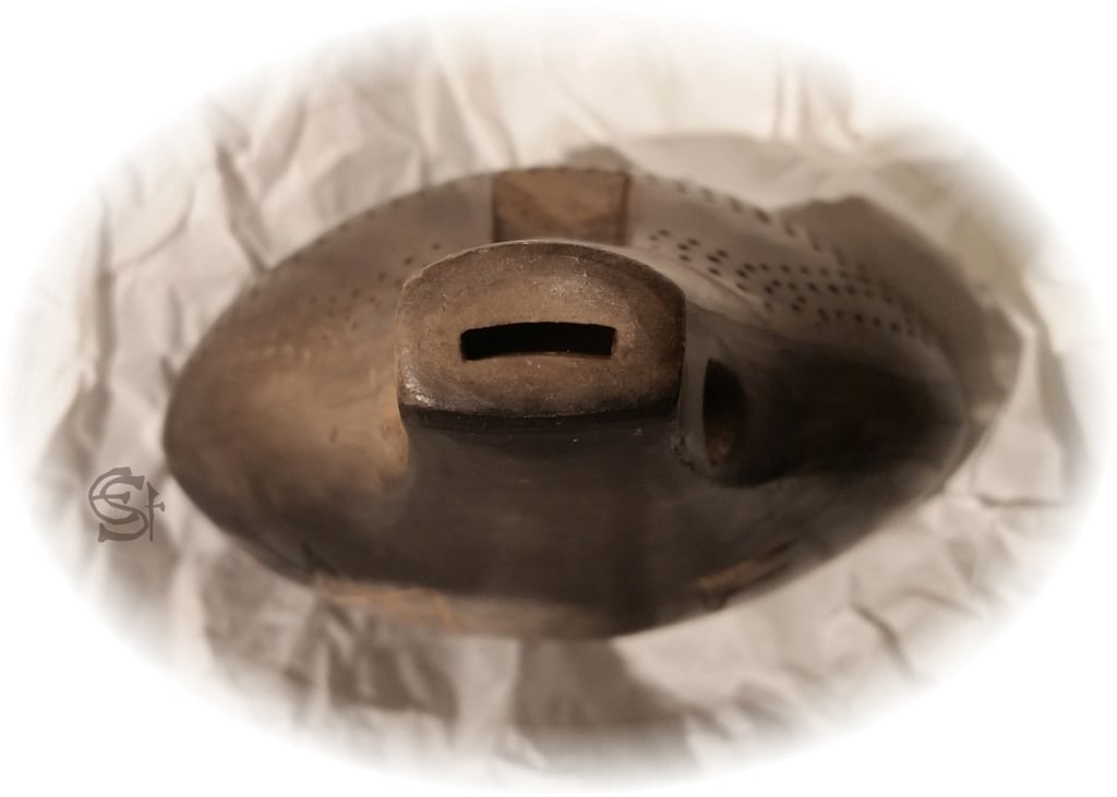 Die Vorderseite ist rund aufgewölbt. Die kleinen Okarinas sind am Schnabel quer durchbohrt, damit man ein Lederband durchziehen und die Okarina umhängen kann. Das ist immer praktisch, wenn man