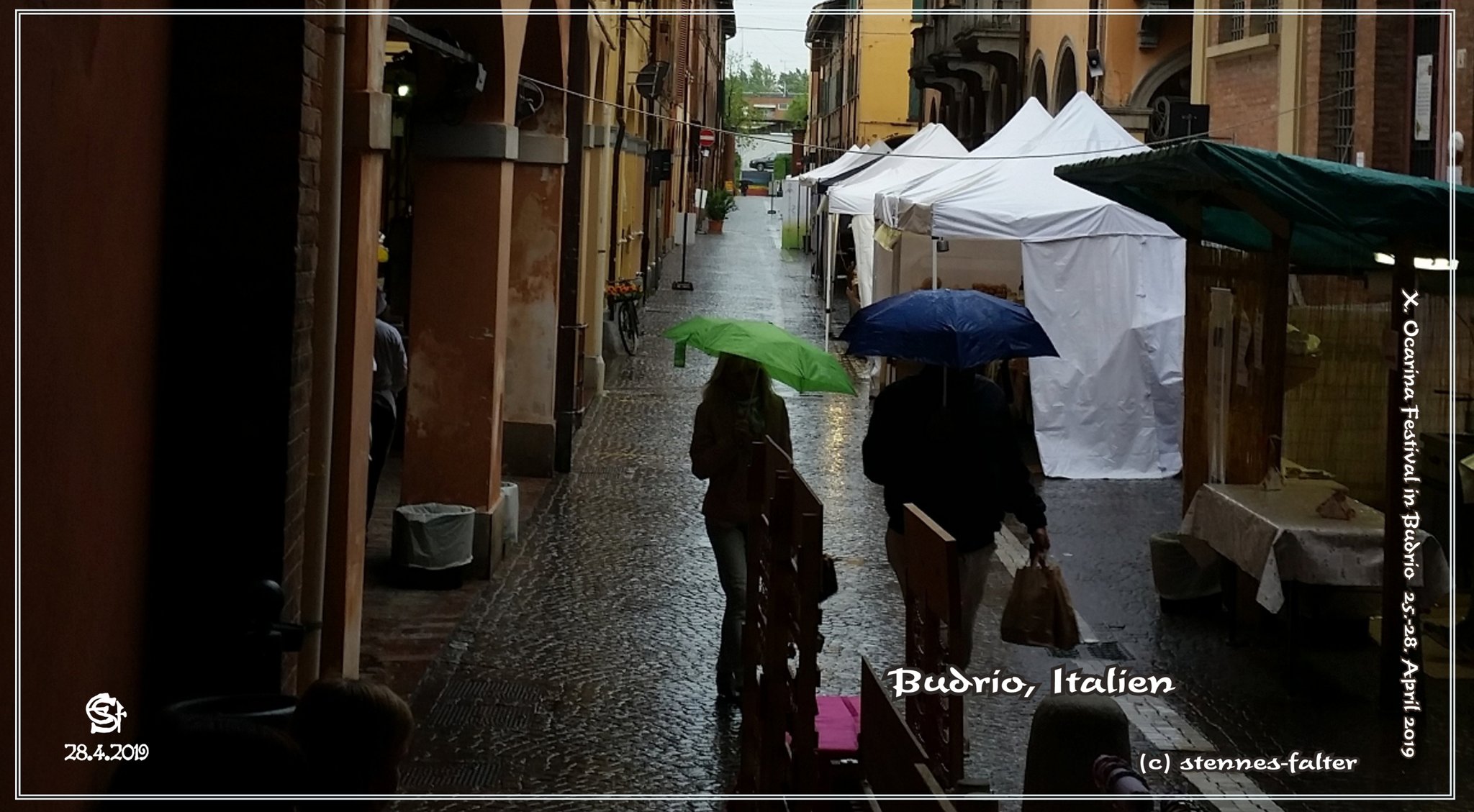 Heute Vormittag wurde es nass. Die Arkadengänge boten aber guten Schutz. So konnte man trotz des Regens gemütlich schlendern, schauen, erzählen, sich zum Musizieren treffen ...