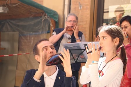 Das gemeinsame Musizieren in wechselnden Gruppen, mit Musikern, zu denen man sonst nur via Internet Kontakt hat, die vielen Konzerte und die anschließenden Treffen in den Gassen, auf dem Markt, in kleinen Parks, Cafés ... ist das, was dem Festival in dieser kleinen italienischen Stadt seinen Flair gibt. Wer als Fremder nur ein wenig über den Markt schlendert, kann das vermutlich nicht so genießen wie jemand, der dort gute alte Bekannte und Freunde aus aller Welt trifft. Ein großes Dankeschön an Fabio Galliani und dem Orgateam des Festivals. Es war wunderbar und hat große Freude gemacht!