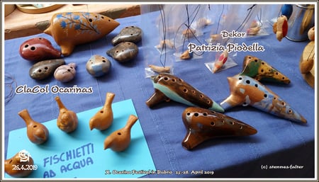 Im Frühjahr besuchte ich das Ocarinafestival 2019 in Budrio, Italien. Dort gab es eine Menge zu entdecken. Das, was mich besonders interessiert, die Griffsysteme, war in der großen Vielfalt nicht immer auf Anhieb zu erkennen. Obwohl ich mir viel Zeit zum Stöbern genommen hatte, bin ich mir sicher, dass ich längst nicht alle interessanten Dinge gefunden habe. Bei der Aufbereitung aller gesammelten Informationen entdeckte ich noch so manches, was ich gerne genauer in Augenschein genommen hätte.