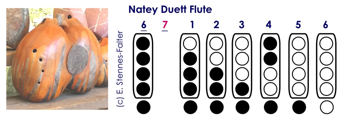 Das Modell "Melodic Huaca" beabsichtigt Hans Houkes auslaufen zu lassen. Da ich dieses Griffsystem besonders mag, habe ich mir noch eine kleine Double mit diesem System gesichert, damit ich beim Spielen auch mal die Tonlage wechseln kann. Die Unterbrechung der Pentatonik stört mich nicht, da der scheinbar fehlende Ton mit einem Gabelgriff gespielt werden kann.