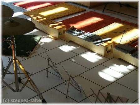 Als Karl Orff die Stabspiele für den Musikunterricht in der Schule entdeckte, waren diese Instrumente in der europäischen Musikszene kaum bekannt. Die erste Plattenaufnahme mit einem Vibraphon entstand 1930 mit dem Jazzmusiker Lionel Hampton. Dadurch wurde es zunächst als Jazzinstrument bekannt. Der schwebende Klang der lang anhaltend nachklingenden Metallplatten paßt aber auch zu vielen anderen Musikstilen. >Beispiel< Den berühmten "Säbeltanz" spielt Viktor Bajlukov zunächst auf einer Marimba, wechselt kurz auf eine Snare, dann zurück zur Marimba und zum Schluß auf ein Vibraphon. >guck hier< Für Orchesterschlagzeuger ist so ein "Wechselspiel" nichts Ungewöhnliches.