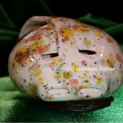 Hersteller dieser Okarina könnte eventuell Rainer Schwarze oder Peter Wiener sein. Das lineare Griffsystem ist gedreht. Die Tonleiter beginnt mit dem linken Zeigefinger.