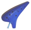 Dadurch sieht man insgesamt zwar 7 Grifflöcher, doch werden diese im Prinzip genauso gespielt wie eine entsprechende Okarina mit 6 Löchern.