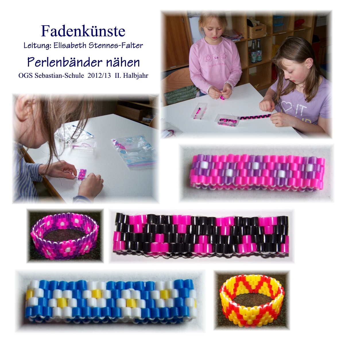 Sehr beliebt sind Perlenarbeiten. Mit speziellen Fädeltechniken lassen sich breite Armbänder oder Serviettenringe mit schönen Mustern zaubern.